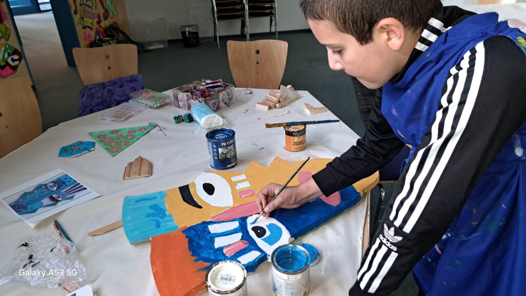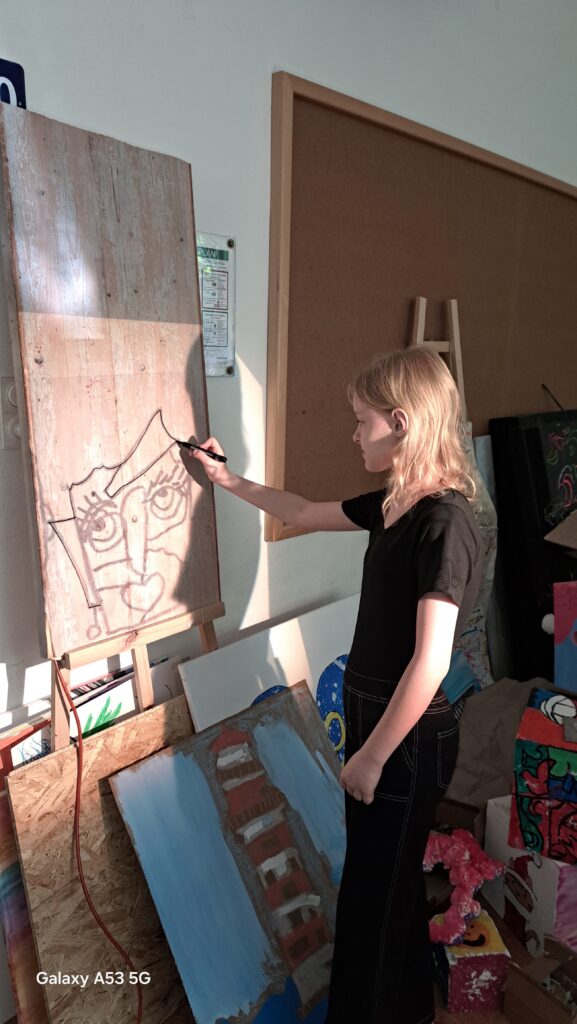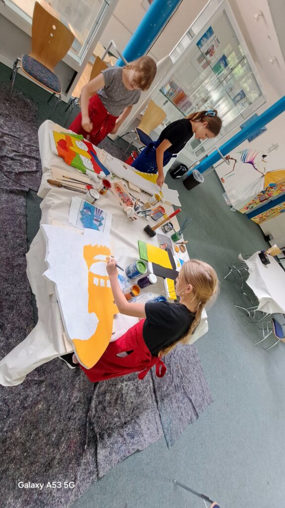 In den ersten 14 Tage der Sommerferien nahmen Schüler:innen der GSS an einem künstlerischen Ferienprogramm teil. Sie konnten sich mit unterschiedlichsten Kunstrichtungen und Ausdrucksarten auseinandersetzen und sie ausprobieren, zum Beispiel mit Ton modellieren, mit Acrylfarben auf Leinwänden malen, mit Holz arbeiten Figuren feilen, schleifen und/oder bemalen.