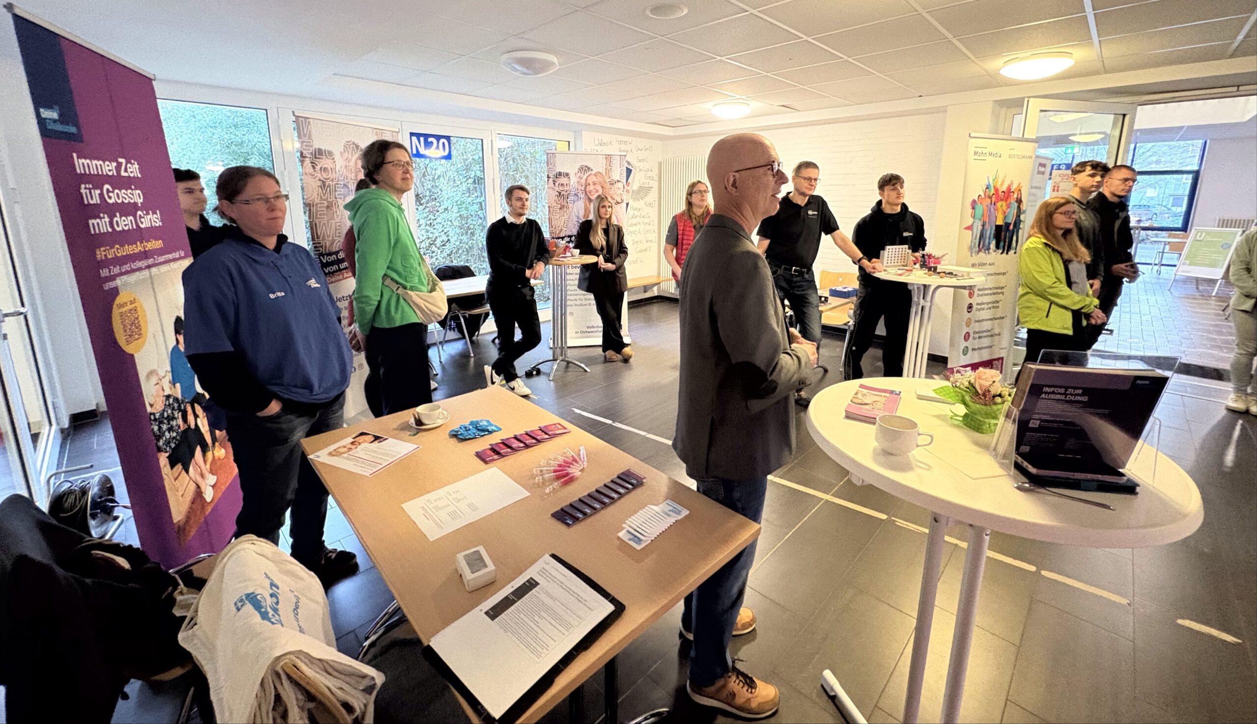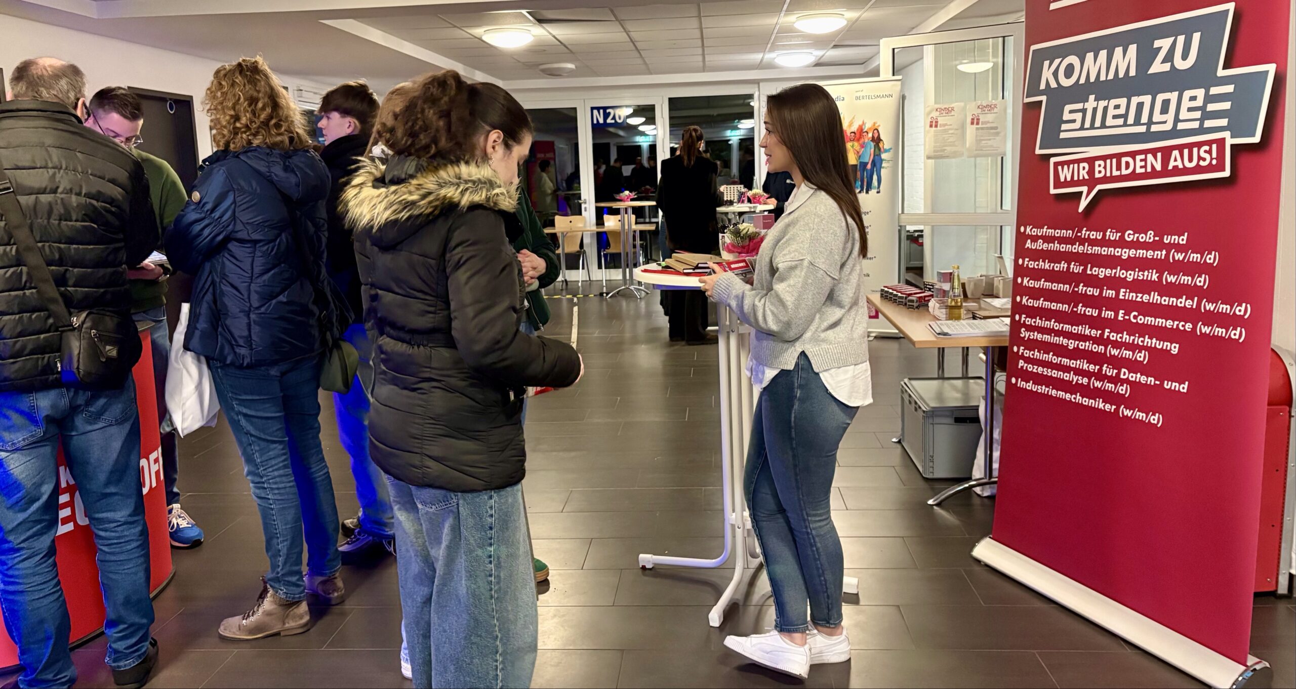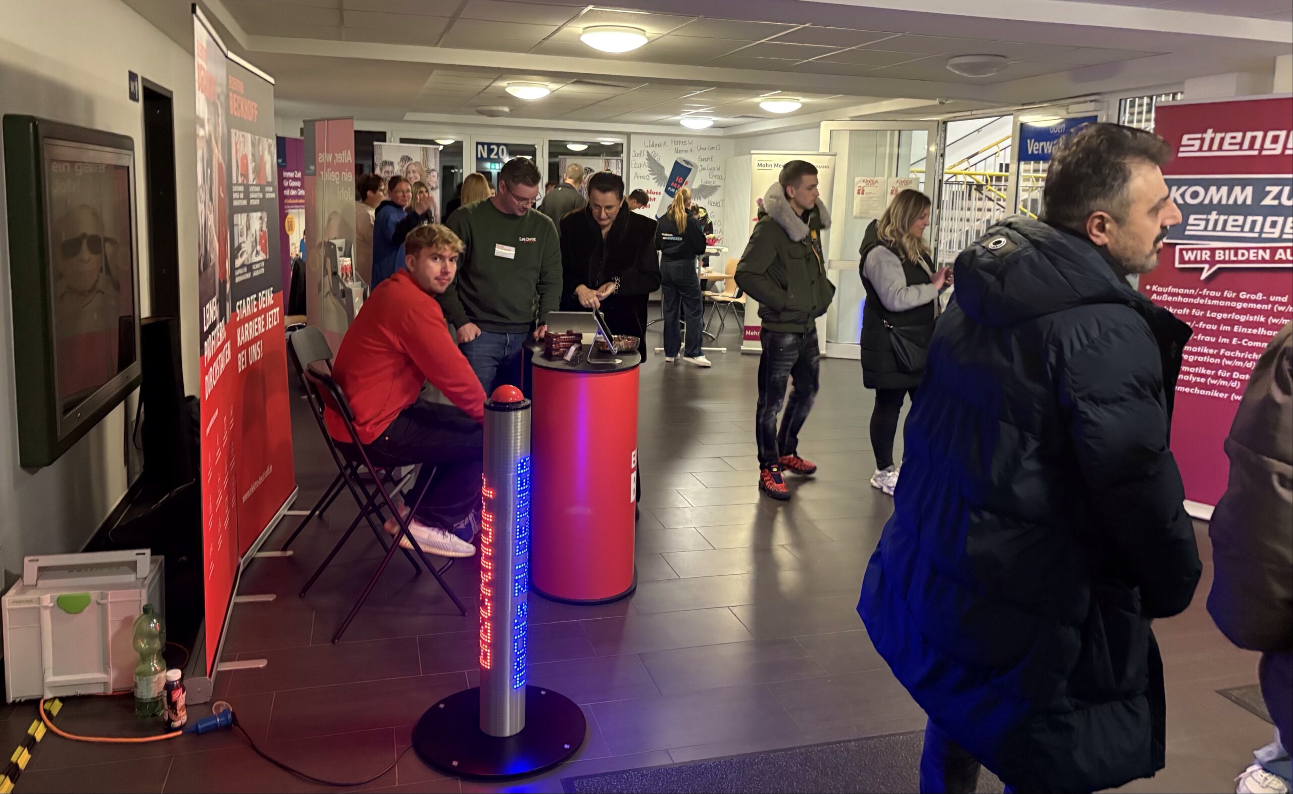 Oft kommen die Personalchefs mit ihren Auszubildenden. Auch sie sprechen unsere Schüler:innen an, ermuntern sie zu einem Gespräch und bleiben ihnen auch mit ansprechenden Goodies im Gedächtnis.