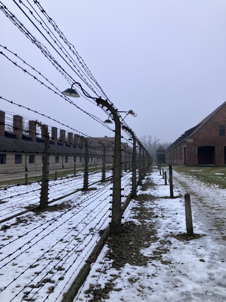 Im Mittelpunkt standen intensive Einblicke in die Geschichte und die heutige Vermittlungsarbeit rund um den Holocaust. Die Gruppe erhielt eindrucksvolle Führungen durch die Gedenkstätte Auschwitz I und Auschwitz II-Birkenau. Besonders bewegend war ein Zeitzeuginnengespräch, das die historischen Ereignisse auf sehr persönliche Weise greifbar machte. Weitere Programmpunkte waren eine Führung durch den Gedenkort KZ-Plaszow, ein Rundgang über das ehemalige Ghettogelände in Krakau, der Besuch der ehemaligen Schindler-Fabrik sowie des jüdischen Viertels Kazimierz. Diese Orte verdeutlichten eindrucksvoll das jüdische Leben vor dem Nationalsozialismus, die systematische Verfolgung und die bleibenden Spuren bis in die Gegenwart.